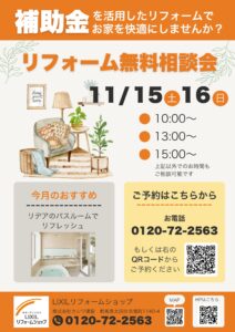 今月のイベントでは特定の商品やテーマを中心にご紹介しておりますが、もちろん、これ以外のお住まいに関するお悩みやご相談も、幅広く受け付けております。「冬、家が寒い」といった断熱のお悩みから、耐震、間取りの変更、水回りのリフレッシュ、外壁のご相談まで、どんな些細なことでも構いません。専門スタッフがお客様一人ひとりに寄り添い、最適な解決策を一緒に考えさせていただきますので、この機会に、ぜひお気軽にご相談ください。